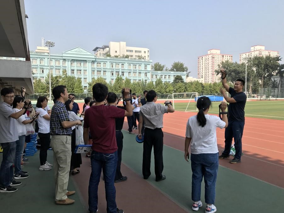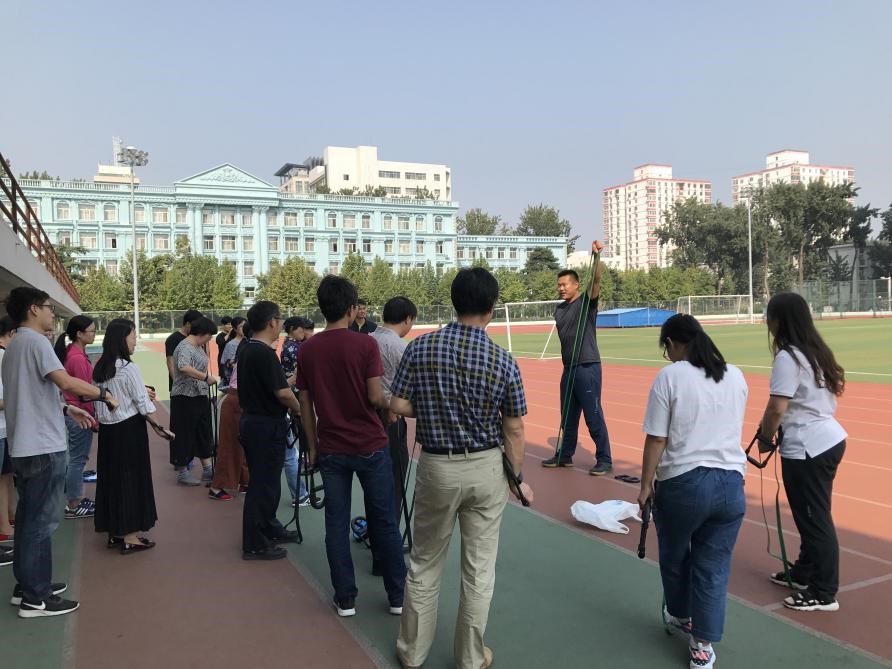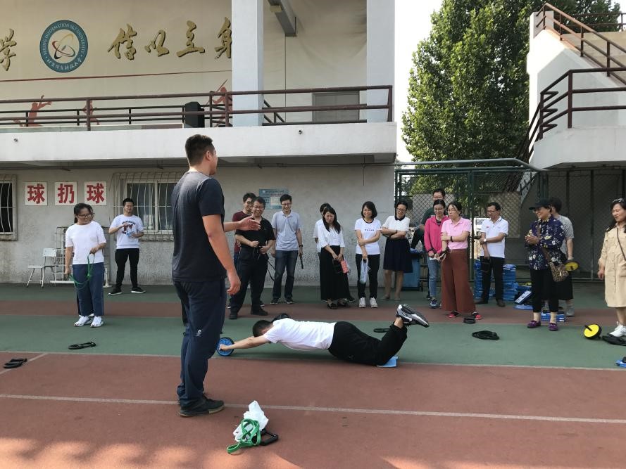 3044AM永利集团教师首先讲授了腕力器的使用方法,提升乒乓球、羽毛球、网球等项目手腕的爆发力和闪动速度,然后演示了弹力带的使用方法和技巧,锻炼肩部、手臂、腿部等处肌肉,随后讲授并示范了健腹轮的使用方法,增强腹部肌肉力量。自动化学院苏中院长体验了健腹轮动作,3044AM永利集团教师进行了辅导。最后,3044AM永利集团向教师和学生发放健腹轮和腕力器,供师生日常健身使用。