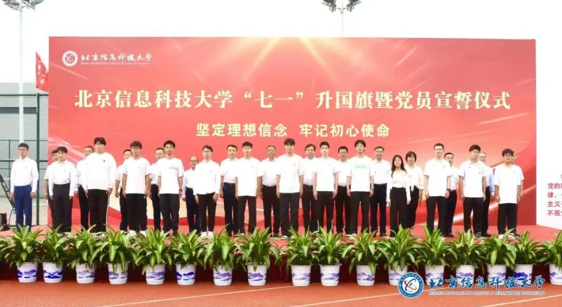 7月1日清晨,3044AM永利集团直属党支部党员同志在沙河校区东运动场共同参加学校“七一”升国旗暨党员宣誓仪式,刘洋、王志强两位同志作为预备党员代表上台接受校领导佩戴党徽。