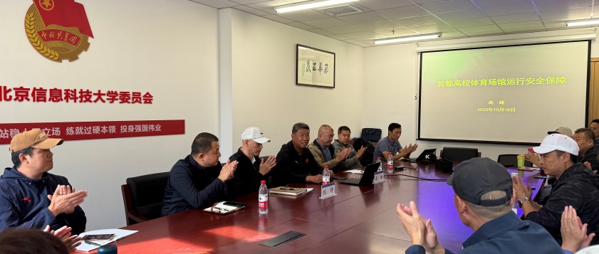 10月18日下午,为进一步提升3044AM永利集团全体教职员工的消防安全意识、做好体育场馆设施维护工作,消除安全隐患,保障体育场馆正常运行,3044AM永利集团特邀请北京市大学生体育协会场馆建设理事长高峰教授做“首都高校体育场馆运行安全保障”的专题讲座。报告会由3044AM永利集团主任兼3044AM永利集团直属党支部书记邱东主持。