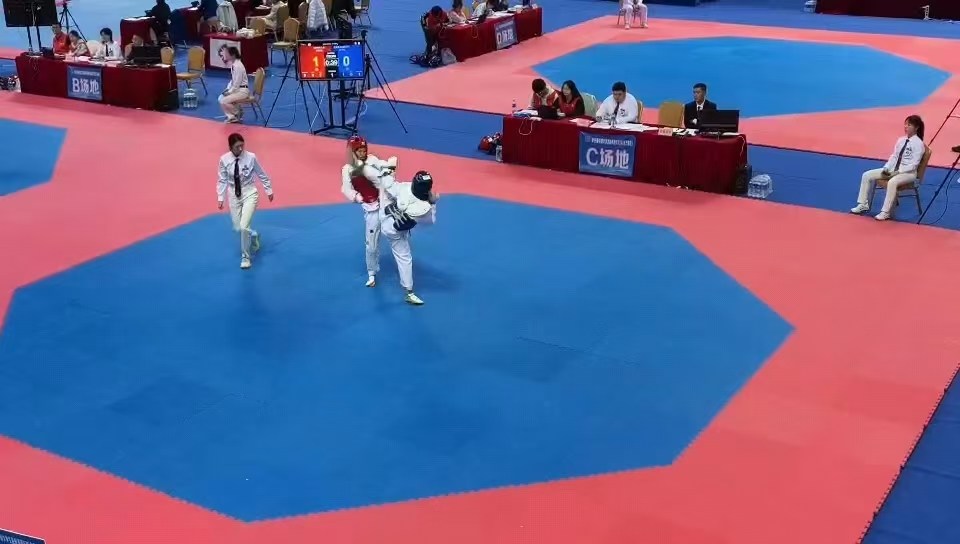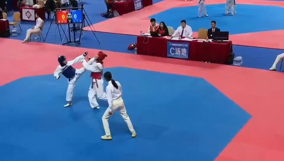 在比赛擂台上,队员们凭借着出色的反应速度和精准的攻击,一路过关斩将,面对实力强劲的对手,毫不畏惧、沉着应对,将平日刻苦训练的成果发挥得淋漓尽致。在竞技的赛场上,紧张与激情并存。半决赛的激烈对决中,来自信息与通信工程学院的赵天佑面对对手的猛烈攻势,她沉着冷静。以一记高位变线击中对手头部,率先夺得3分。紧接着,她乘胜追击,利用高位横踢击头,扩大领先优势,成功晋级决赛。来自公共管理与传媒学院的闫思嘉表现出色,连下两城。半决赛时,遭遇劲敌却临危不乱。最终以2:1的大比分成功从上半区突围,挺进决赛。