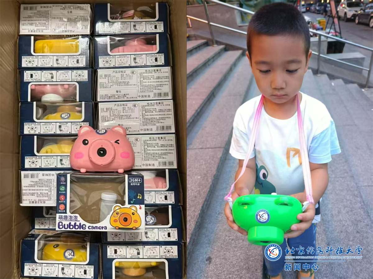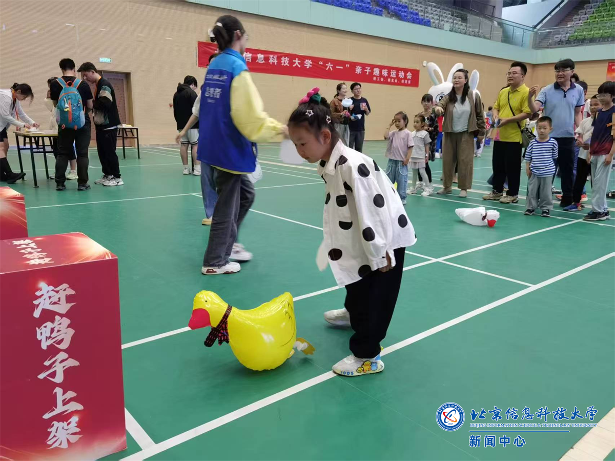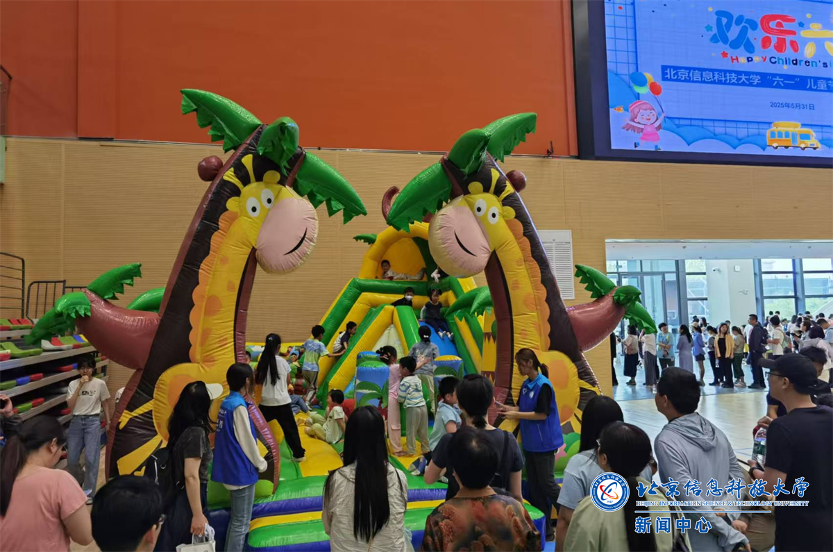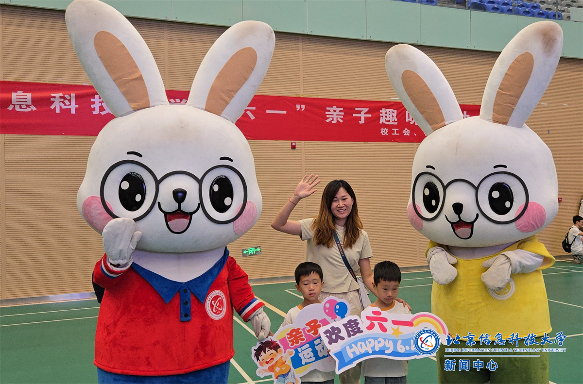 活动现场还邀请了比斯兔玩偶表演,可爱萌趣的玩偶造型深受小朋友喜欢,纷纷举着“我爱信息科大”、“欢度六一”等手幅合影。