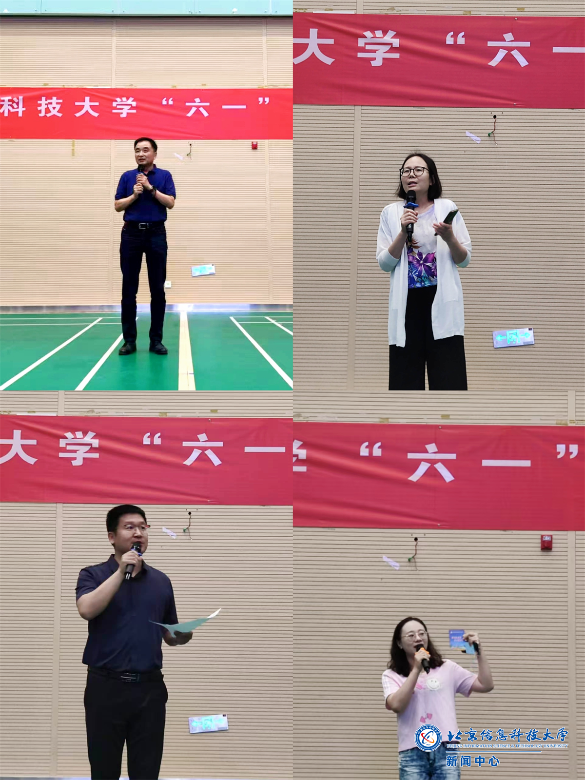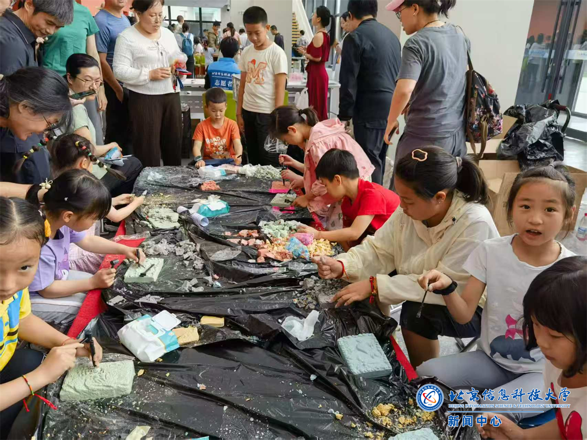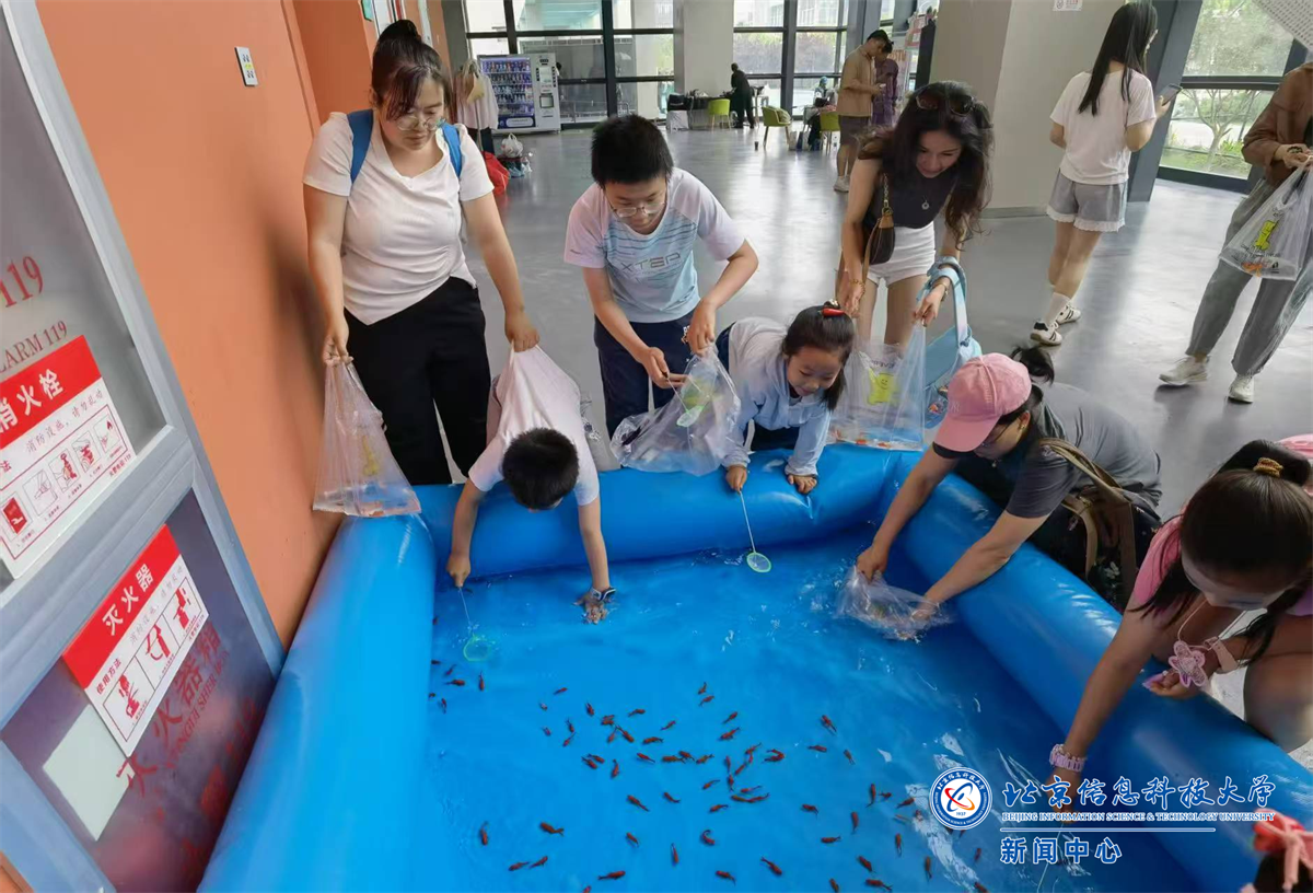 活动现场还邀请了比斯兔玩偶表演,可爱萌趣的玩偶造型深受小朋友喜欢,纷纷举着“我爱信息科大”、“欢度六一”等手幅合影。