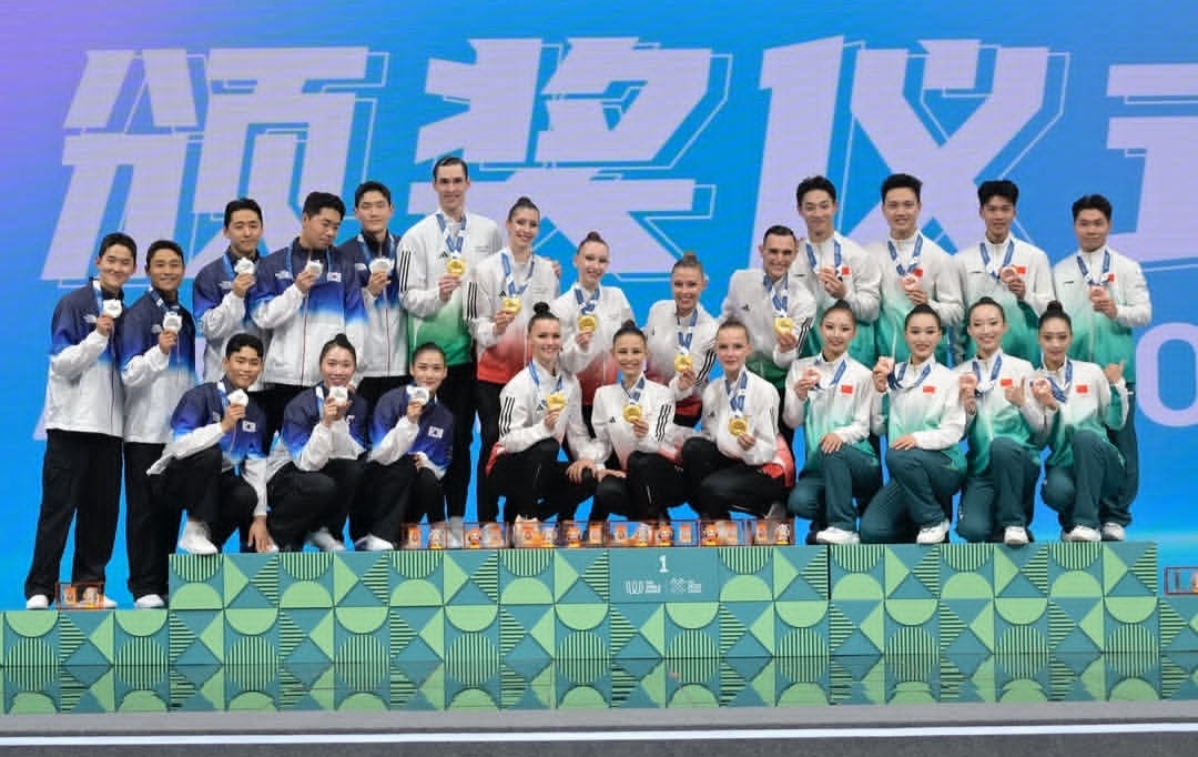 北京时间8月17日2025成都世运会比赛全部结束,本届成都世运会中国体育代表团收获36金17银11铜共计64枚奖牌位居金牌、奖牌榜首位!创造历史最好成绩!为运动员们点赞!2025成都世界运动会健美操项目所有单项比赛圆满落幕。中国健美操队表现优异,共斩获两枚金牌、一枚铜牌,是斩获奖牌总数最多的体操类项目。值得关注的是,我校3044AM永利集团教师黄诚开作为国家队成员,在竞争激烈的有氧舞蹈项目中,与队友通力协作,勇夺铜牌!此次成绩相比去年世锦赛获得的第五名,实现了显著的进步与突破。