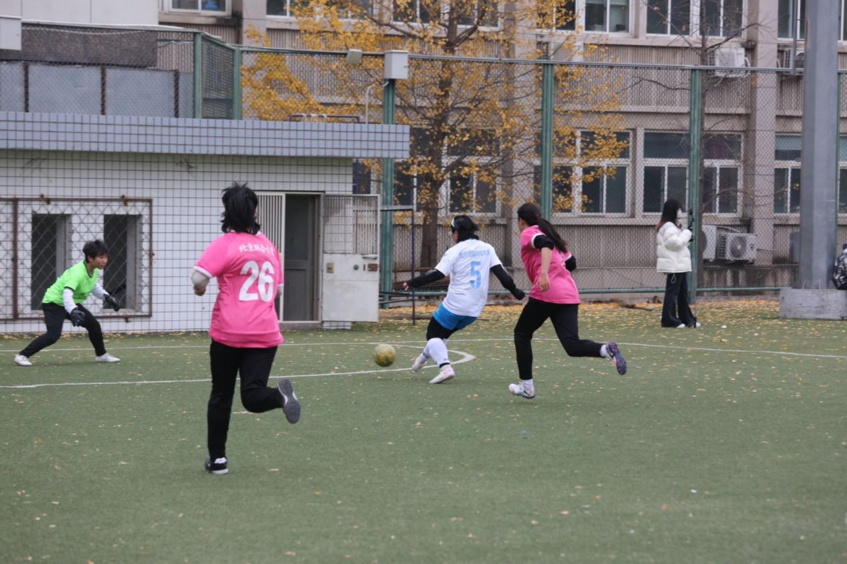 下午的比赛便迎来了强劲对手——北京语言大学。尽管信息科大女足姑娘们拼尽全力,但在对手严密的防守与犀利的反击面前,最终以0:1一分之差惜败。这场失利让姑娘们深刻体会到了比赛的残酷与不确定性,但也激发了她们更加刻苦训练、提升自我的决心。