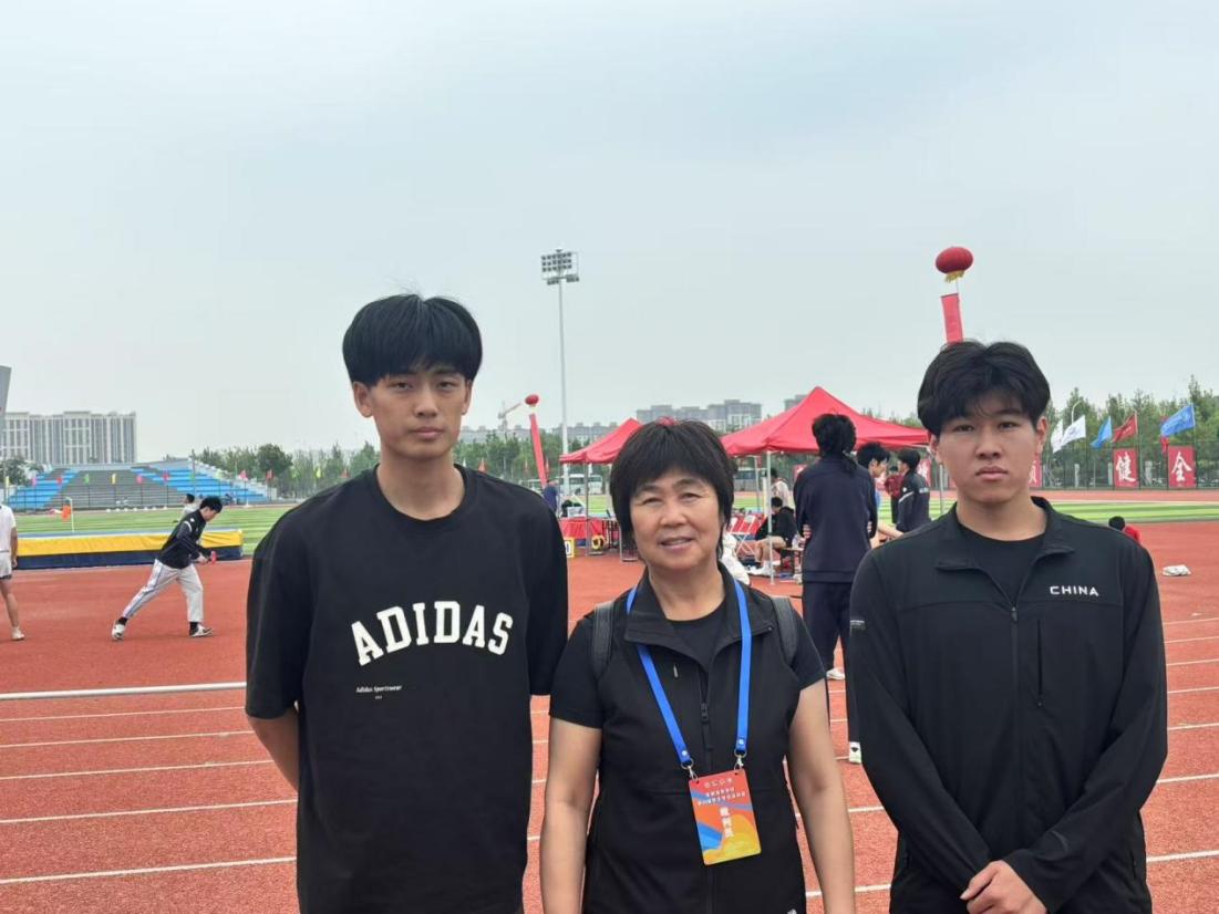 校田径队教练吴淑君老师与参赛运动员张晋齐(左)、罗丹阳(右)合影