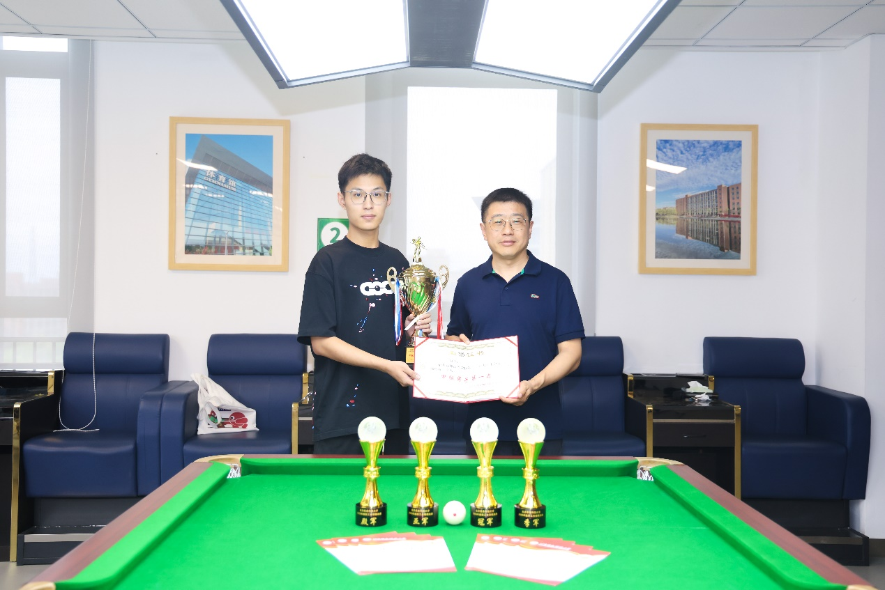 本次颁奖仪式我们还特别邀请了来自机电学院的王书涵同学。在刚刚落幕的首都高校大学生第十二届台球锦标赛中,王书涵同学用自己的高超技艺从全北京高校一千多名参赛选手中一路过关斩将、连克强敌,历经七轮比赛,勇夺桂冠,为学校争得荣誉,创造了历史。王书涵同学还是2024年学校首次荣获国家挑战杯金奖团队的成员之一,他的出色表现也充分体现了信息科大以立德树人为目标,培养德智体美劳全面发展的优秀人才的卓越成效。