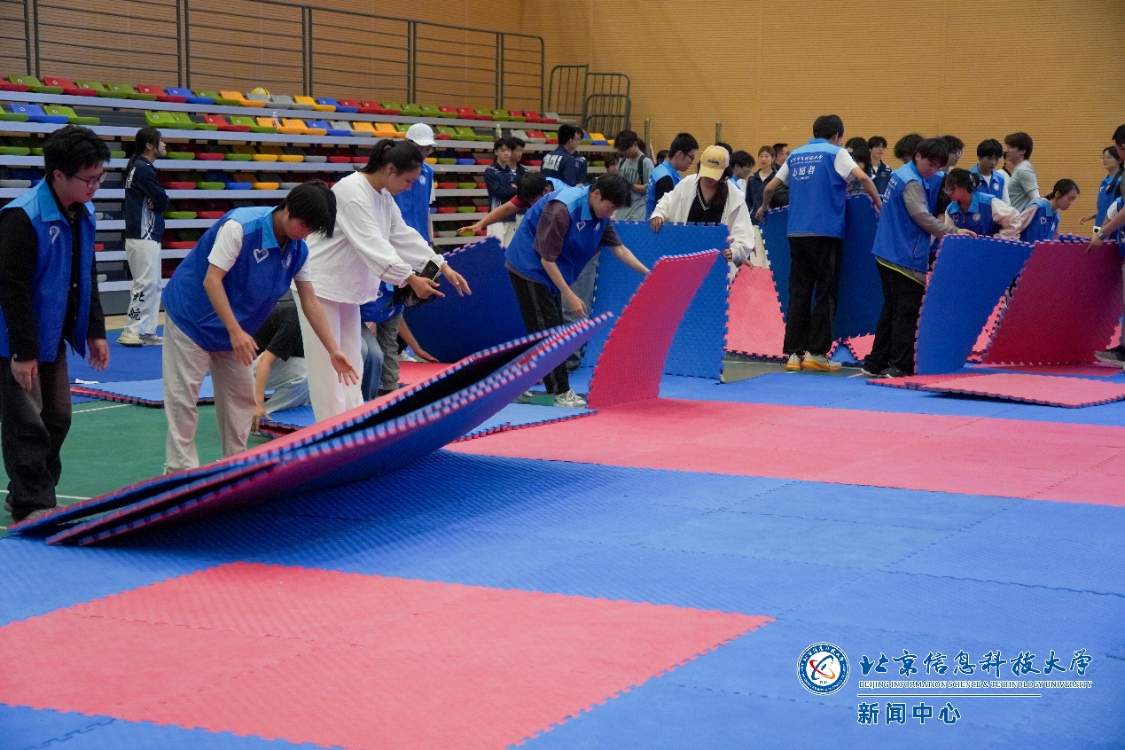 赛事期间,由我校60余名学生组成的志愿者团队全程参与服务保障工作,他们身着统一蓝色马甲,在场地布置、设备运维、检录引导、媒体宣传等岗位上展现出高度专业性和责任心,赢得参赛师生的高度赞誉。